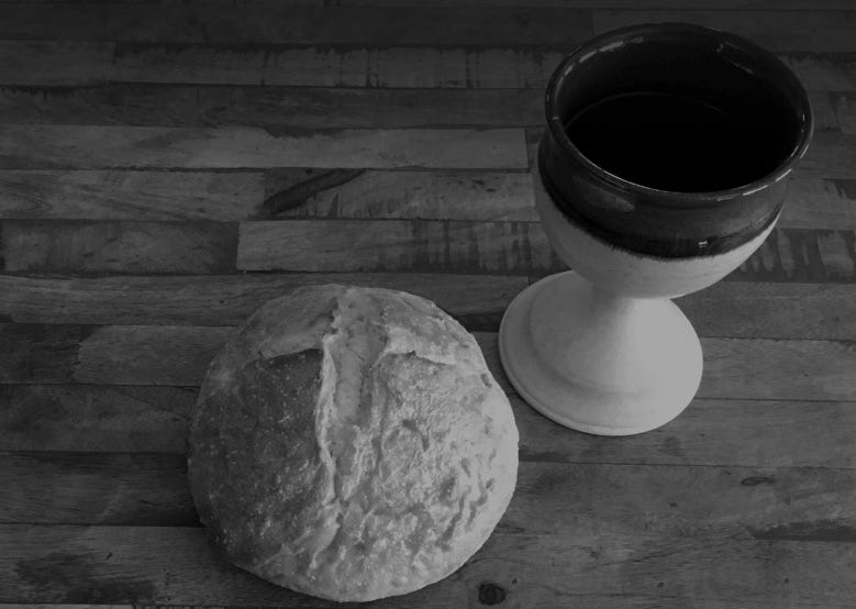 “While they were eating, Jesus took bread, and when he had given thanks, he broke it and gave it to his disciples, saying, ‘Take it; this is my body.’ Then he took a cup, and when he had given thanks, he gave it to them, and they all drank from it. ‘This is my blood of the covenant, which is poured out for many,’ he said to them. ‘Truly I tell you, I will not drink again from the fruit of the vine until that day when I drink it new in the kingdom of God.’ When they had sung a hymn, they went out to the Mount of Olives” (Mark 14:22–26).