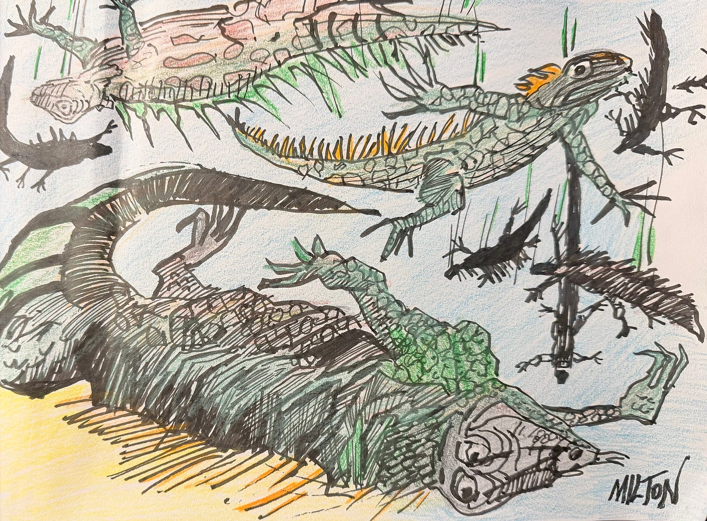 Iguanas are not part of Florida’s ecosystem. They do not belong. As a result, other creatures suffer. Disease spreads. Landscapes erode. Bill adds lizard removal to his gardening list. There are stories to tell the folks back in Ohio, certainly—but stories of adventure always carry a cost.